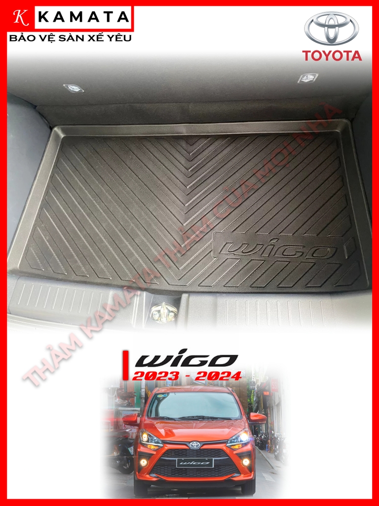 Lót Cốp TPV Xe Toyota Wigo 2023 2024, lót cốp nhựa ô tô dẻo đàn hồi, chống nước, không mùi